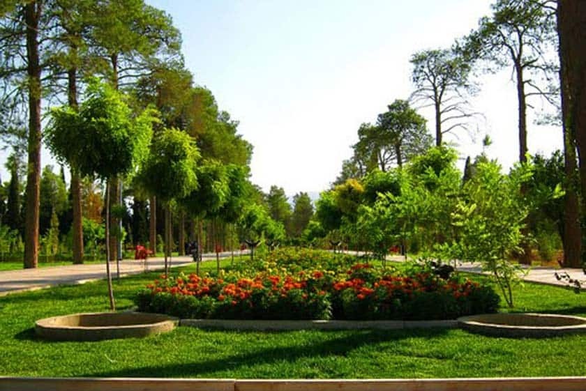 فضای بسیار وسیع و سبزی از درختان سرو و کاج وجود دارد، سروهای بلند و زیبایی که در فواصلی مشخص قرار گرفته اند. محوطه ی این باغ تماما چمنکاری شده است و آبنماهای متعددی هم در فضای این باغ قرار داده شده است که همه ی این ها در کنار هم باعث بوجود آوردن فضایی دلنشین شده اند.